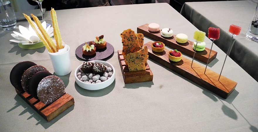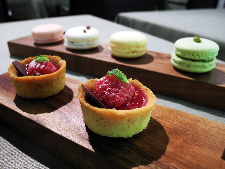 Zum Schluss wird nochmals ein grosses Feuerwerk gezündet. Alles auf dem Tisch ist von erstklassiger Qualität. Am meisten begeistern uns die Himbeer-Tarte und das Honiggebäck. Aber auch die Gelées und Macarons sind toll! So hochklassig sollte jedes Abendessen enden.