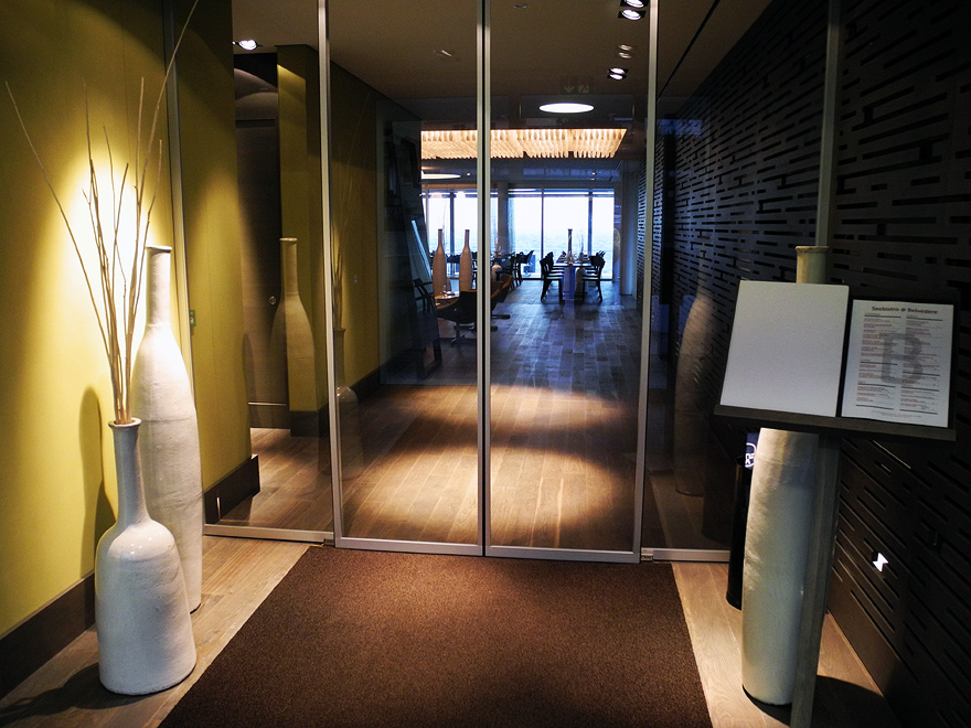 Von Aussen ist das ‚Belvédère‘ recht unscheinbar. Lediglich eine Tafel an der Dorfstrasse macht auf das Restaurant mit „Genuss am See“ aufmerksam. Innen steigt zuerst der Geruch der neuen Einrichtung in unsere Nasen. Bald weicht dieser jedoch dem Duft von feinen Gerichten aus der Küche – die Vorfreude steigt. Die Einrichtung ist sehr modern, der Blick auf den See malerisch. Ein umgänglicher Servicemitarbeiter nimmt uns in Empfang und führt uns zu unserem Tisch. Dabei gehen wir an einer einladenden Lounge vorbei und notieren uns, beim nächsten Besuch dort einen Apéro zu geniessen.