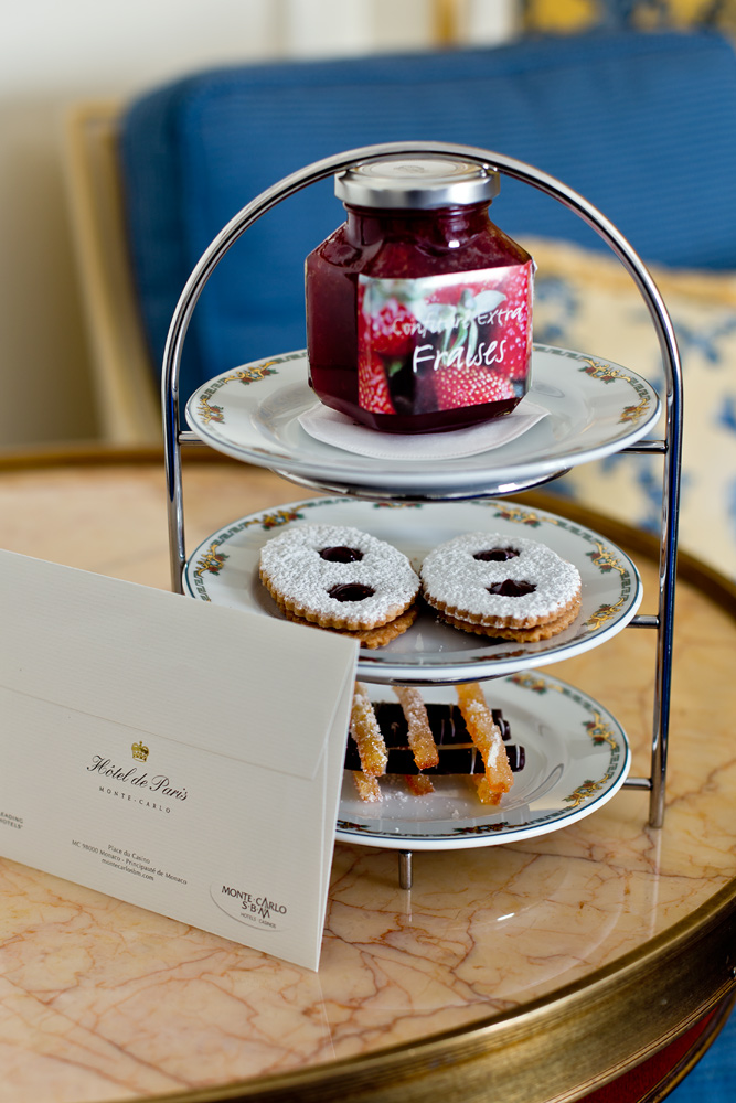 Unser Zimmer ist komfortabel eingerichtet. Auf einer Étagère wartet eine hausgemachte Erdbeer-Konfitüre und zwei Spitzbuben auf uns. Vom kleinen Balkon offenbart sich uns ein wunderschöner Blick auf Monaco, den Yachthafen und das offene Meer. Das mediterrane Klima erlaubt es uns auch im Oktober draussen zu sitzen und bei einem Glas Champagner den Sonnenuntergang zu geniessen.