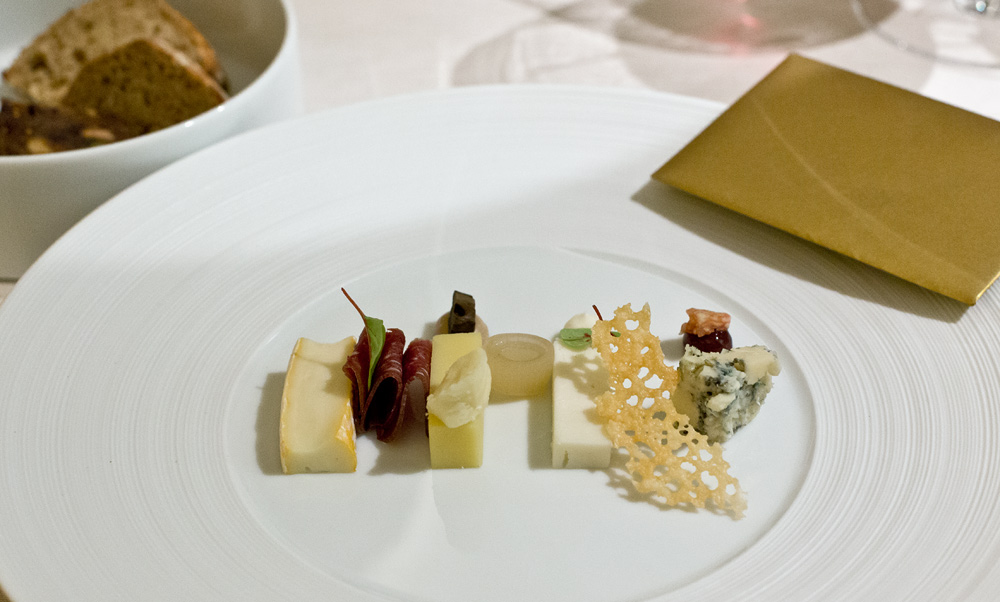 Speisekarte: Das Menü in 4 Gängen kostet 185 Franken, in 5 Gängen 215.- und komplett in 6 Gängen 240 Franken. Dazu gibt es Apérohäppchen, ein Amuse, ein pré Dessert und Friandises. Als „Supplement“ können noch zusätzliche Gerichte wie Wagyu (95.-) oder Kaisergranat (65.-) dazu bestellt werden. Der Käsewagen von Willi Schmid wird mit 35 Franken verrechnet.