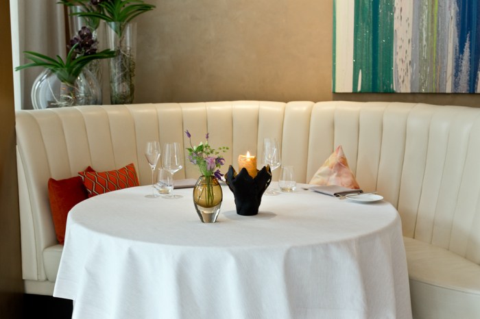 Die stylische Menükarte, welche wir bereits vom Schwester-Restaurant Ecco Zürich kennen, offenbart uns die heutige Reise. Das Menü kann in 4 – 6 Gängen bestellt werden. Damit ist das grosse Menü zwei Gänge kürzer als bei unserem letzten Besuch. Darauf angesprochen offenbart uns der sympathische Chef, dass er sich für weniger Gänge dafür grössere Portionen entschieden hat damit der Gast das einzelne Gericht intensiver geniessen kann. Wir bestellen das grosse Menü und ein Glas Champagner von Perrier-Jouët.
