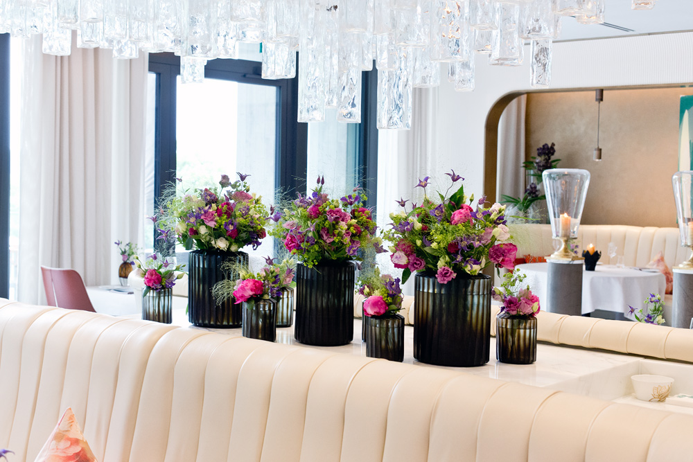 Das Ecco im wunderschönen Giardino in Ascona besuchten wir zum letzten Mal vor sechs Jahren (zum Bericht). Rolf Fliegauf und seine Brigade begeisterten uns damals mit einem starken Menü, welches, bis auf die spürbare Passion, mit den Gerichten 2008 nichts zu tun hatte. Die Vorfreude auf den heutigen dritten Besuch ist entsprechend riesig. Auch weil wir auf die neue Location gespannt sind. Das 2-Sterne-Restaurant ist innerhalb des Hotels umgezogen und empfängt die Gäste nicht mehr direkt nach der Hoteleinfahrt, sondern direkt am wunderschönen Teich. Dadurch hat man einen idyllischen Blick auf den Garten und bekommt die ausgelassene Stimmung der Gäste des Zweitrestaurants Hide & Seek, welches ans Ecco grenzt, mit über. Im Gegenzug fehlt nun etwas die gediegene, intime Stimmung, die wir am vorherigen Standort sehr geschätzt hatten. Wenn man das neue Restaurant durch die massive Holztür betritt fällt einem zum einen die schöne offene Küche auf, zum anderen die grosse Wand mit tausenden Rosen aus Stoff, welche das Herz jedes Instagram-Models höherschlagen lässt.